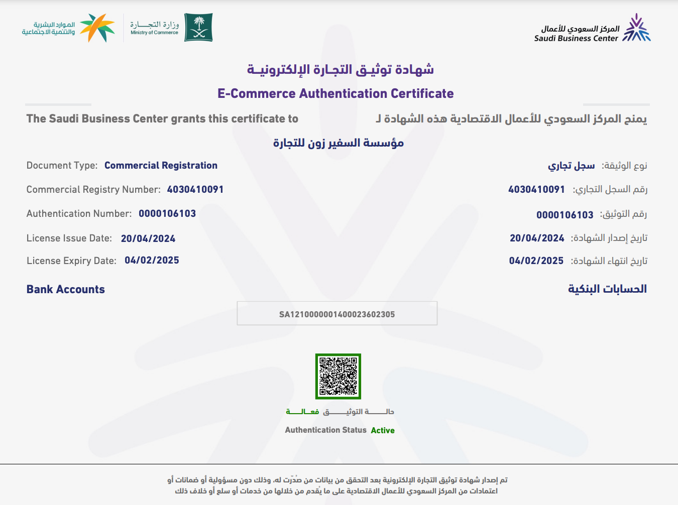 نعم نحن موثقين ولدينا سجل تجاري باسم مؤسسة السفير زون للتجارة